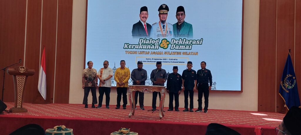 Makassar, muisulsel.or.id – Forum Kerukunan Umat Beragama (FKUB) Sulawesi Selatan menggelar Dialog Kerukunan dan dirangkai dengan Deklarasi Damai Tokoh Agama yang dibuka secara resmi oleh Gubernur Sulawesi Selatan Andi Sudirman Sulaiman, ST di Baruga Asta Cita Rujab Sulsel Jalan Sungai Tangka Makassar, Kamis 25 September 2025. Deklarasi tersebut dibacakan langsung oleh Ketua FKUB Sulsel Prof…