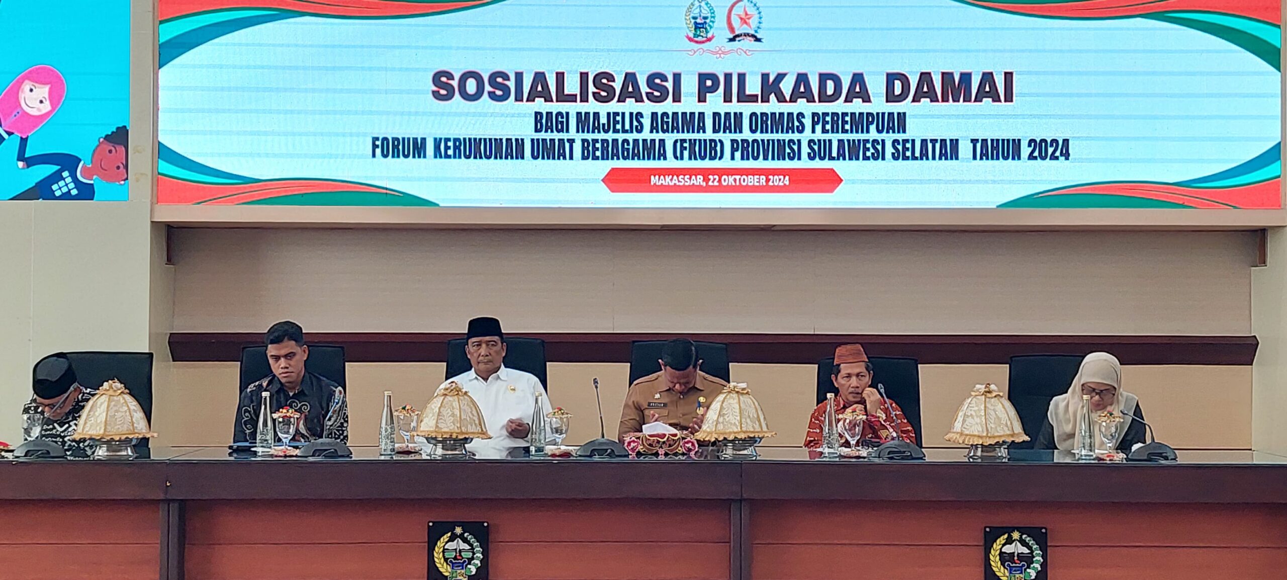 Sosialisasi Pilkada Damai ini di pelopori oleh Forum Kerukunan Umat Beragama (FKUB) Sulawesi Selatan bekerja sama dengan Kementerian Agama Provinsi Sulsel, dan Pemerintah Provinsi Sulsel serta menghadirkan ratusan ormas Islam perempuan, dan juga perwakilan seluruh agama yang ada di Makassar.