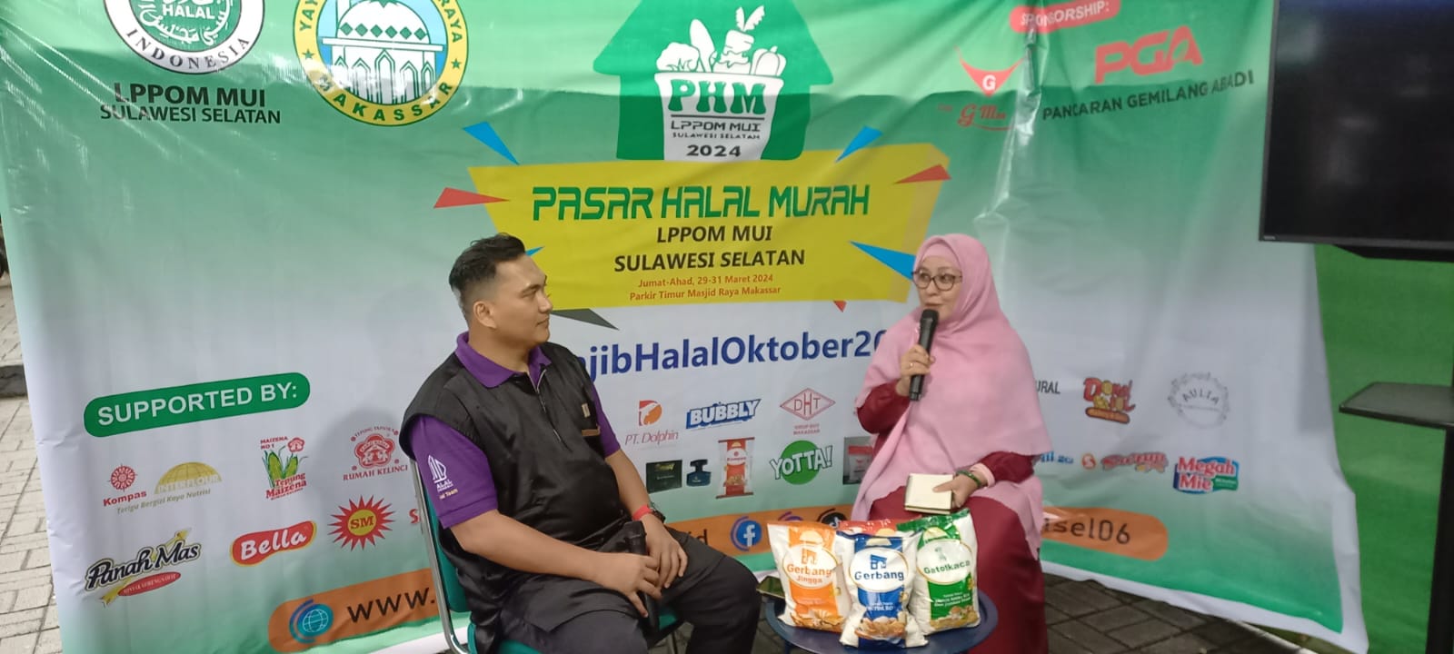 Pasar Halal Murah ini juga mengadakan sesi Podcast sebagai rangkaian dari kegiatan. Tampak dalam gambar perwakilan dari PT. Interflour Indonesia Bapak Zainal Arif yang berkesempatan sebagai tamu pembicara pertama pada sesi tersebut.
