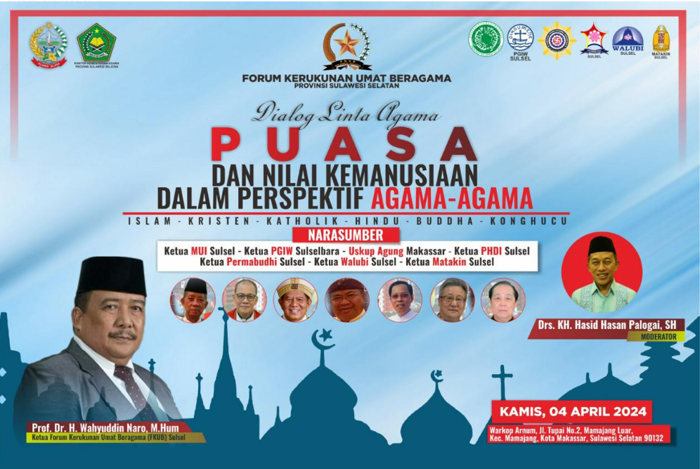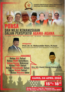 FKUB Sulawesi Selatan akan menggelar Dialog Lintas Agama pada hari Kamis 04 April 2024. Dimana Dialog tersebut akan dimulai usai shalat Ashar