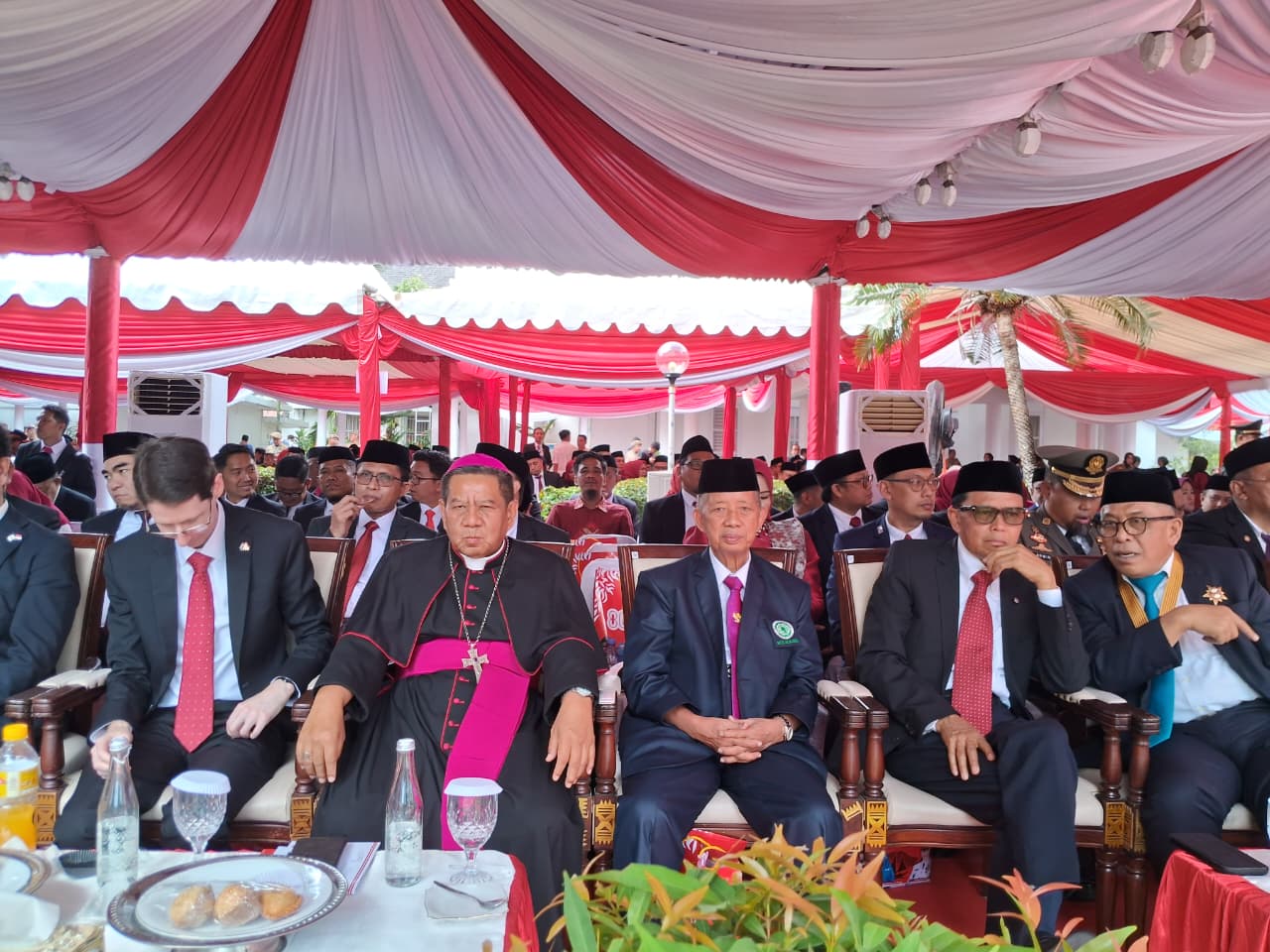 Makassar, muisulsel.or.id – Ketua Umum Majelis Ulama Indonesia (MUI) Sulawesi Selatan Prof. Najamuddin turut menghadiri upacara peringatan HUT ke-80 Kemerdekaan Republik Indonesia di halaman Rumah Jabatan Gubernur, Jln Jenderal Sudirman, Makassar, Ahad (17/8/2025).