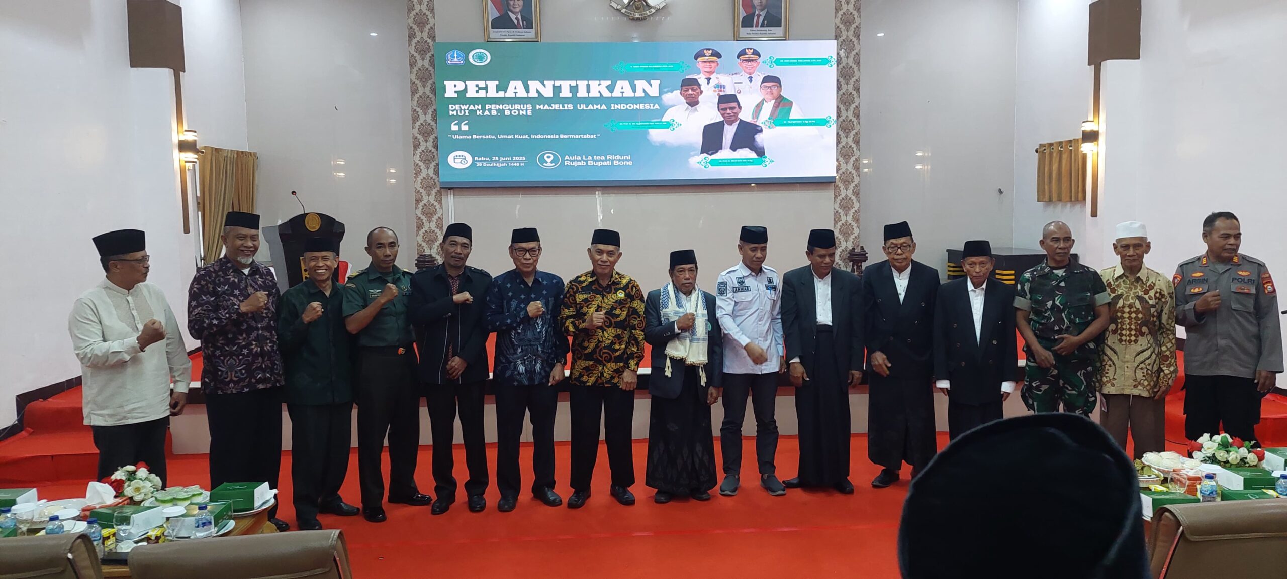 Prosesi pengukuhan pengurus dilakukan oleh Wakil Ketua Umum MUI Sulsel Gurutta Prof Dr KH M Ghalib, MA, dan dihadiri oleh Bupati Bone Andi Asman Sulaiman, S.Sos M.M.