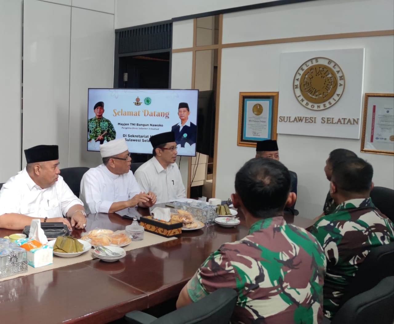 Panglima Divisi Infanteri 3 Kostrad Mayjen TNI Bangun Nawoko di dampingi oleh para Pejabat Utama (PJU) Divif 3 Kostrad, melaksanakan audiensi dengan Majelis Ulama Indonesia Sulsel.
