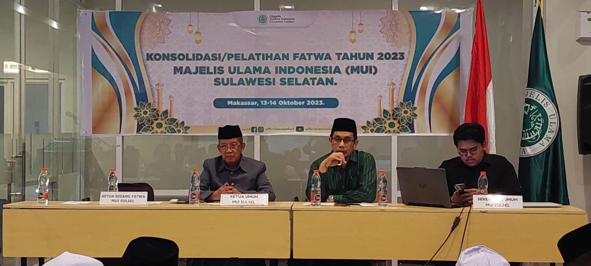 Hal itu disampaikan olehnya di sela-sela konsolidasi yang dirangkai dengan pelatihan Fatwa kepada seluruh MUI Kabupaten Kota se Sulawesi Selatan di hotel Amaris, Jalan AP. Petarani, Makassar, 13 Oktober 2023.